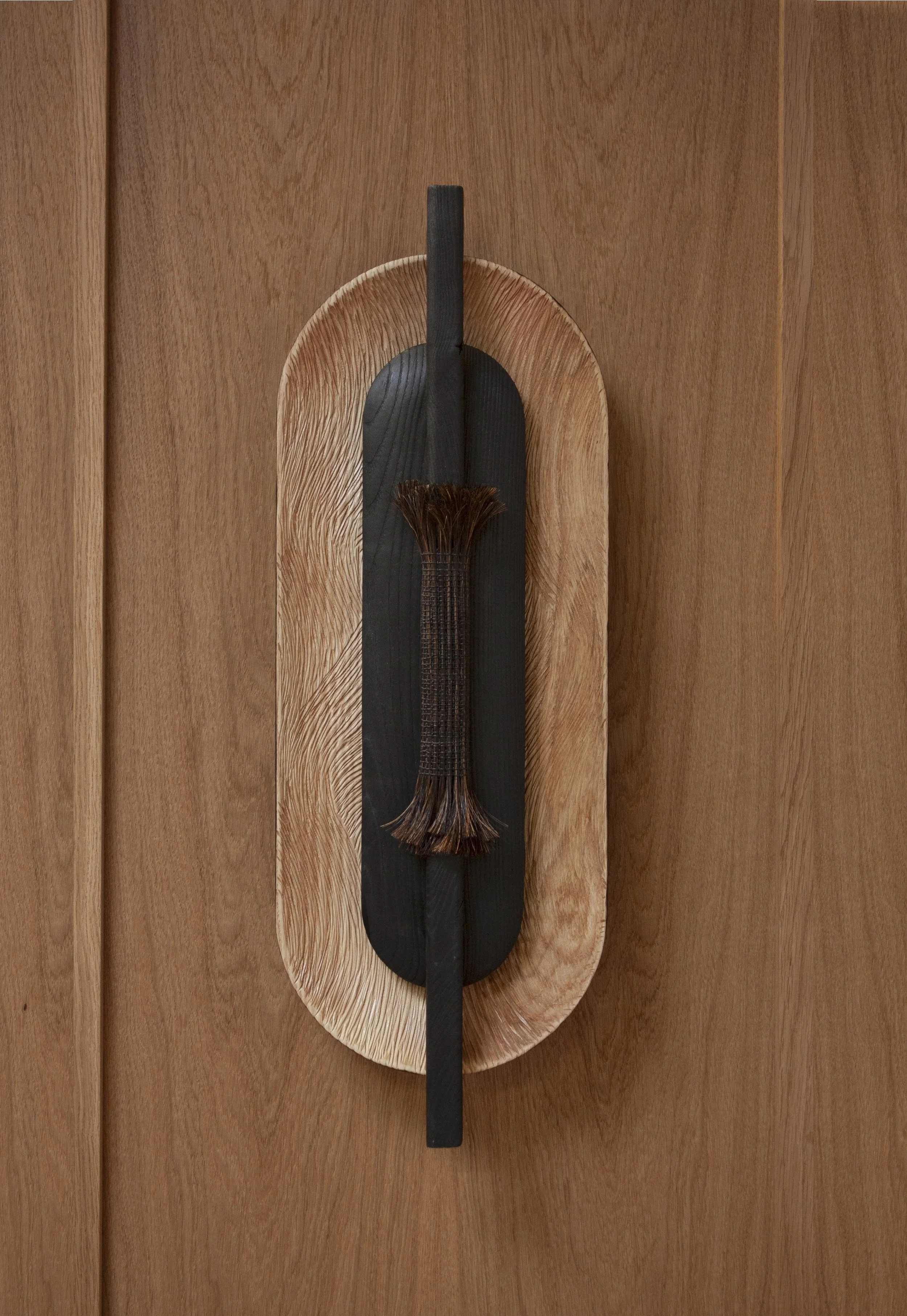 Frêne brûlé, brossé et sculpté / brushed burnt and carved ash